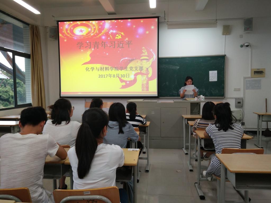 2017年8月30日,化学与材料学院学生党支部在学生党员中开展了学习青年习近平主题活动。通过观看微视频《青年榜样习近平》和研读《习近平的七年知青岁月》,其中一个个鲜活的事例、一幅幅生动的场景,特别是习近平总书记“苦其心志、劳其筋骨、饿其体肤、空乏其身”的历练过程,让学生党员的精神世界得到了一次洗礼和升华。近期推出的这两个专题恰逢其时,它充分展示了青年习近平矢志不渝的理想追求、爱国为民的家国情怀、勤奋好学的进取精神、求真务实的良好作风、吃苦耐劳的优秀品质。它集中展现了人民领袖成长的独特魅力、崇高思想精神的独特魅力、生动感人故事的独特魅力,是广大团员青年树立正确人生观、励志成才的鲜活教材,是广大团员青年奋发图强、提升素质的生动范本,更是广大团员青年深刻理解习近平总书记系列重要讲话精神和治国理政新理念新思想新战略的重要参考,也是学校开展大学生思想政治教育最生动、最宝贵的教材(王昌雷 供稿)