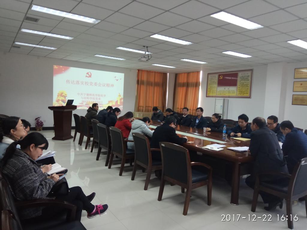 12月21日,校党委夏书记在校行政二楼会议室召开了全校处级以上干部会议。会上他传达了习近平总书记就查摆和纠正形式主义、官僚主义问题作出重要指示,强调“纠正‘四风’不能止步,作风建设永远在路上”,再次要求各基层党组织要坚定不移全面从严治党,驰而不息改进作风。22日化学与材料学院党委立即在求实楼会议室向全院党员传达了本次会议精神。