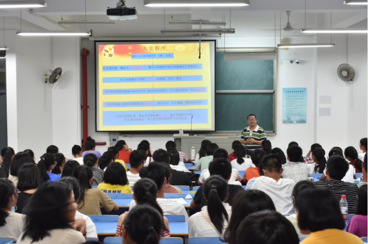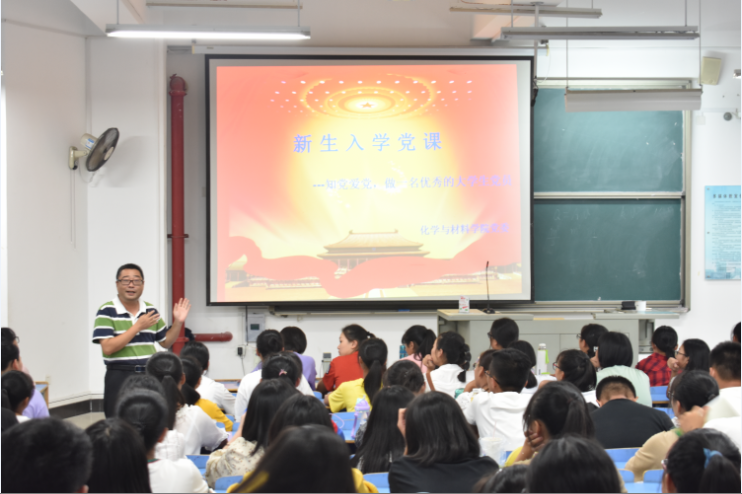 2018年9月29日晚,化学与材料学院在CC401大教室为2018级全体新生开展了一场题为“知党爱党,做一名合格的大学生党员”的新生入党教育讲座,会议由陈峰老师主讲。