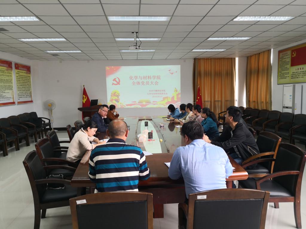 5月7日下午,化学与材料学院在院会议室召开全体党员大会,传达学习《中共中央关于加强党的政治建设的意见》(以下简称“《意见》”),《中国共产党重大事项请示报告条例》(以下简称“《条例》”)和《习近平:关于坚持和发展中国特色社会主义的几个问题》等会议精神。会议由院党委书记游东宏主持,院长应少明、副院长陈峰以及全院教师党员参加会议。