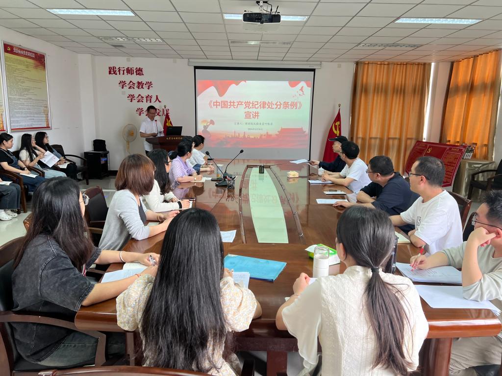 5月24日下午,为深入贯彻落实党纪学习教育工作要求,教育引导全院党员师生学纪、知纪、明纪、守纪,根据校纪委部署要求和院党委工作安排,院党委纪检兼组织委员叶陈清在求实楼D401会议室就《中国共产党纪律处分条例》作专题宣讲报告。