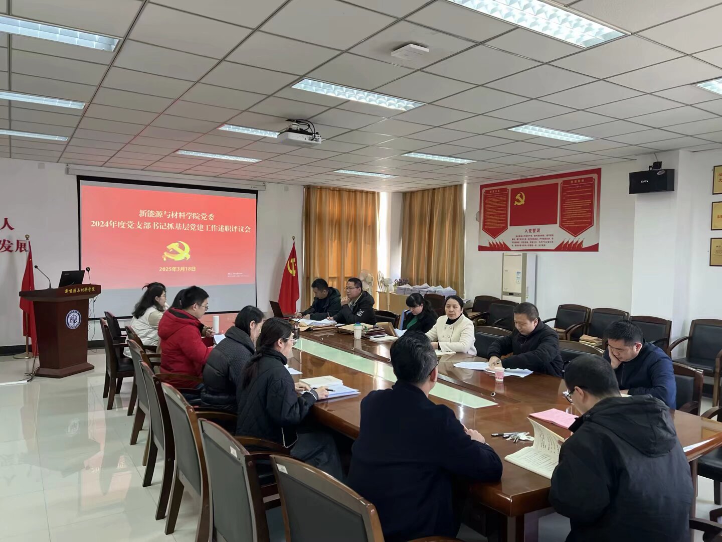 为总结交流基层党建工作经验,切实加强和改进新形势下学院基层党建工作,3月18日,新能源与材料学院党委召开2024年度党支部书记抓党建述职评议会。学院党委书记郭赛玉,学院院长、党委副书记黄晓辉,院党委委员雷永汉、叶陈清出席会议,各党支部书记、各科室负责人以及师生党员代表等参会,学院党建工作联络员、校纪委纪检监察室副主任孙创锦列席会议。会议由党委书记郭赛玉主持。