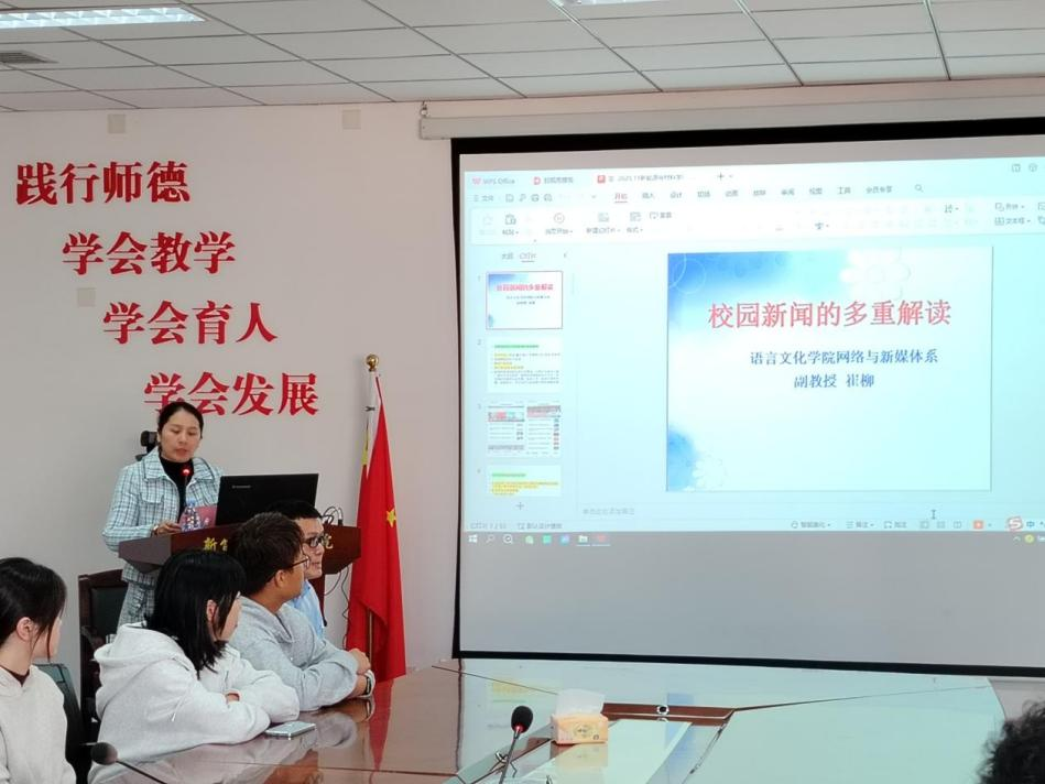 为持续提升宣传通讯员的新闻敏感性和撰写能力,进一步提高学院新闻宣传工作质效,11月25日下午,beats365唯一官网入口官网在求实楼D401举办《校园新闻的多重解读》专题讲座。语言文化学院崔柳副教授受邀主讲,学院团委、学生会干部及班级宣传委员等参加。