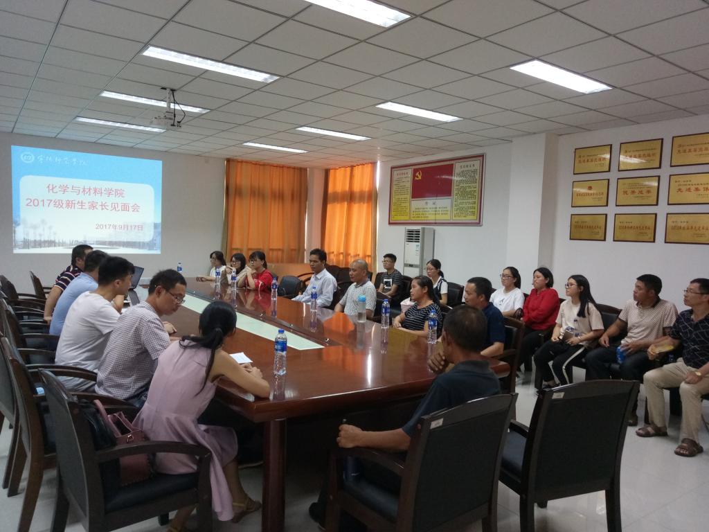 9月17日,化学与材料学院17级新生家长见面会在学院会议室召开。副院长应少明、雷永汉老师、王昌雷老师、吴艳玲老师、周晨老师和部分新生家长参加了见面会。会议由雷永汉老师主持。