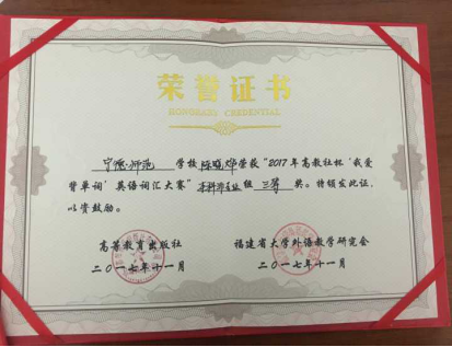 11月19日,2017年高教社杯“我爱背单词”英语词汇大赛于福建商学院举行。本次比赛是由福建省大学外语教学研究会和高等教育出版社联合举办的第二届英语词汇大赛,由福建商学院承办。本次比赛面向福建省各高校2016、2017级学生,共有27所学校,105个学生参赛。我校共派出4名学生参赛:2名学生参加本科英语专业组,2名学生参加本科非英语专业组的比赛。