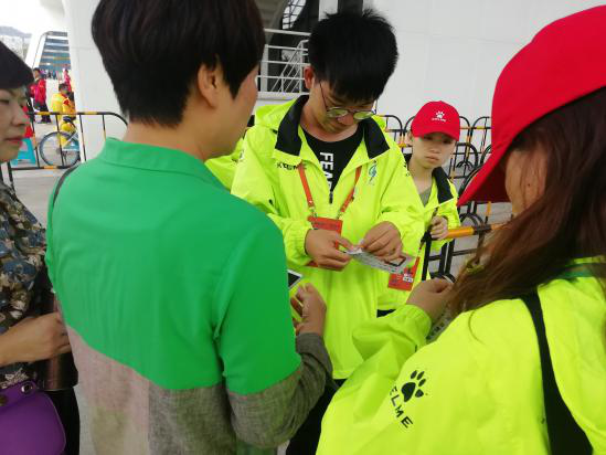 化材院的志愿者们为观众提供检票、引导、咨询等服务。