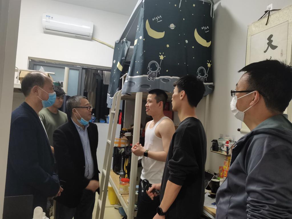 为精准了解封闭式管理状态下学生的思想、学习和生活状况,院领导一行随机走访了学生宿舍,详细询问学生思想、学习、生活和宿舍安全、卫生等情况,与同学展开亲切交流,认真听取同学们反映的问题,并希望同学们能自觉遵守疫情防控要求和学校安全管理的规章制度,保持良好的生活作息习惯,课余加强体育锻炼。
