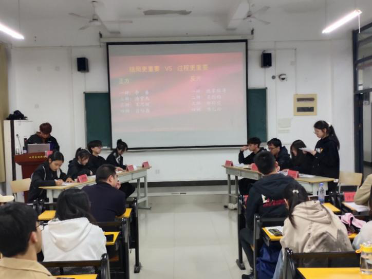学院共有16支队伍报名参赛,辩论赛经过初赛、复赛,决赛在3月26日求实楼CC402举行。正方队员由22级化学专业李睿、22级冶金工程专业汤宇杰、22级材料化学专业王思颖、22级环境科学与工程专业翁裕鑫组成;反方队员由22级材料化学(闽台合作)专业池家锦涛、21级冶金工程专业吴剑昀、22级应用化学专业邹玲霞、22级应用化学专业陈乙玲组成。辩论的正反双方针对“过程与结局谁更重要”展开激烈辩论。正反双方紧扣辩题,旁征博引,你来我往、妙语连珠,缜密的逻辑思维和灵机的应变能力,为大家呈现了一场有理有据的精彩辩论。