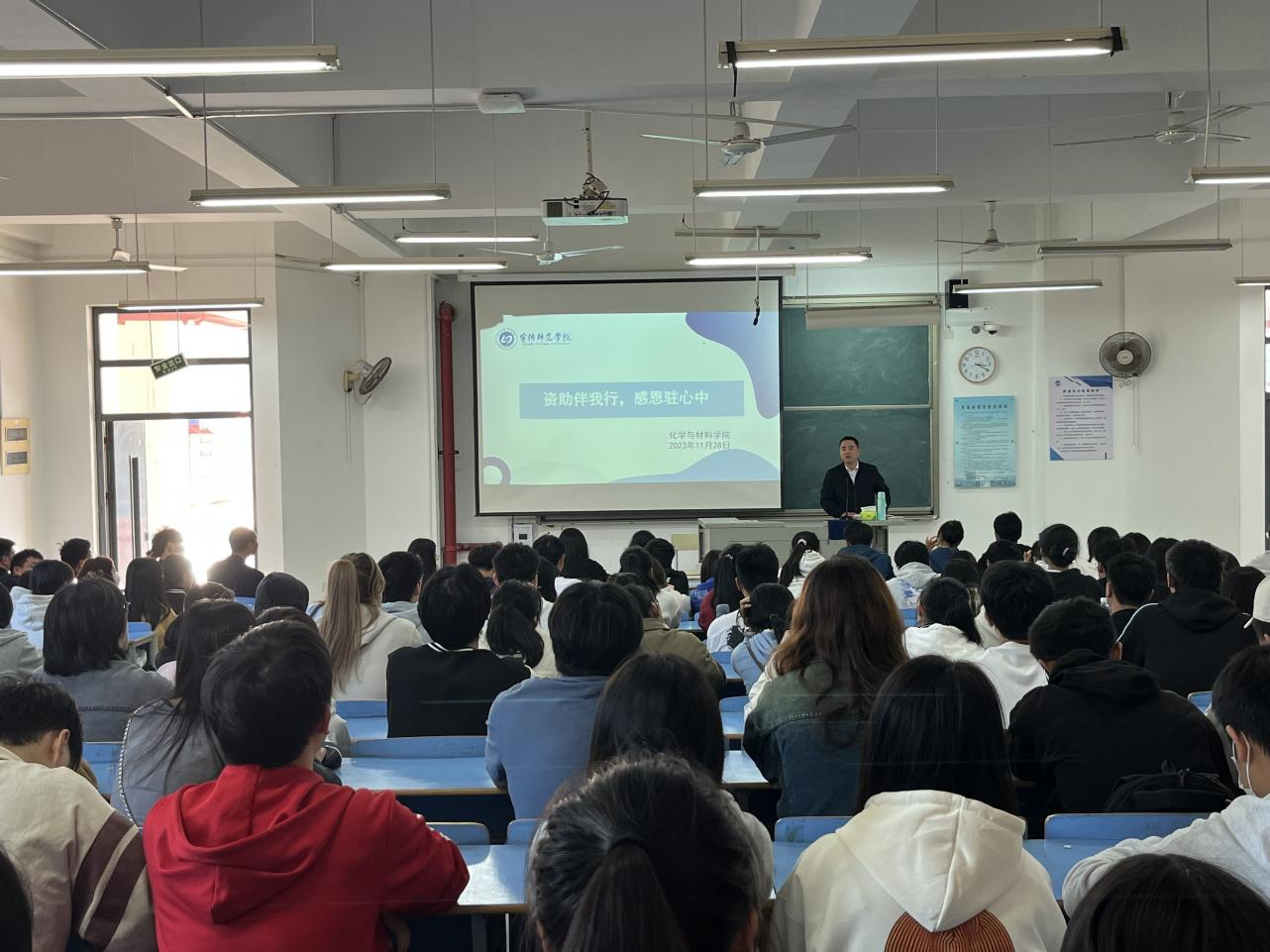 为了让贫困生更好了解资助政策,助力贫困生成长成才,我院于11月28日下午召开了题为“资助伴我行,感恩驻心中”的贫困生座谈会。院党委书记游东宏、学工办主任雷永汉、辅导员郑锦涛、陈健巧以及2023-2024学年全体入库贫困生参加本次会议。