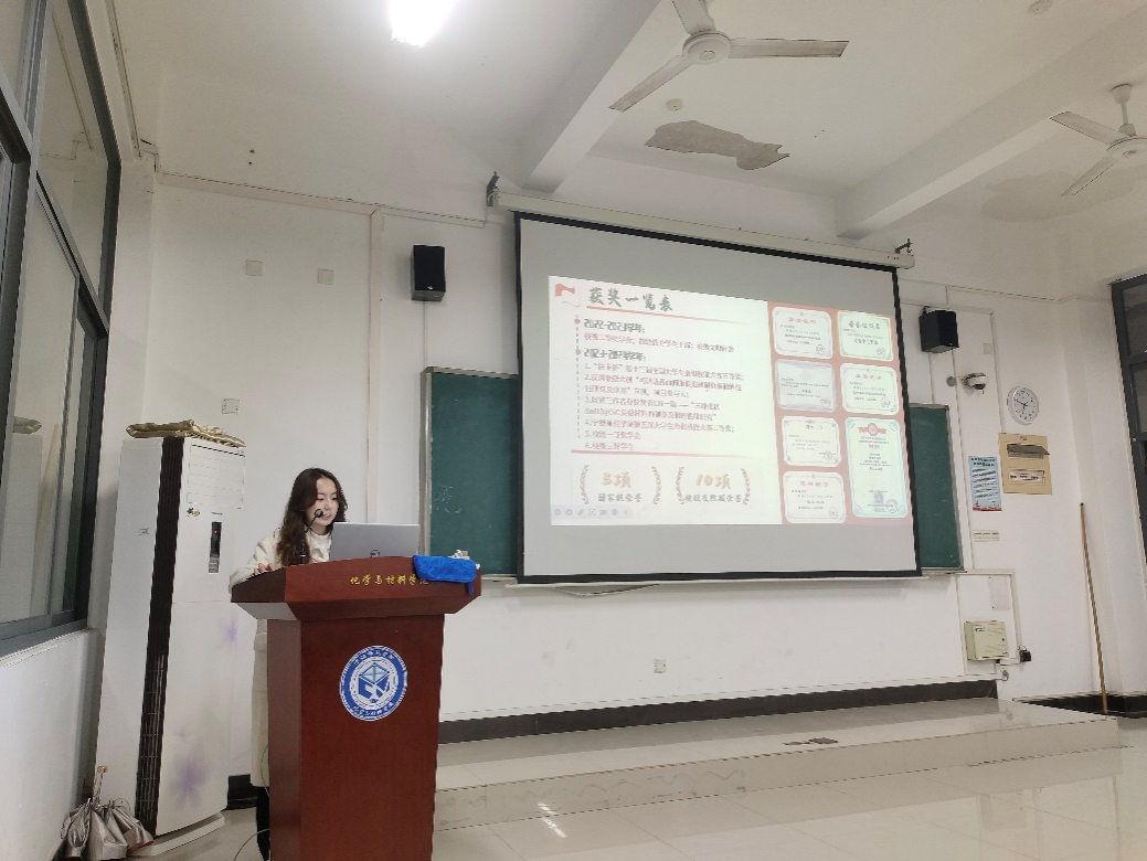 陈玉凤则从应用化学专业出发,着重讲述了自己在科研过程中的探索与成长,鼓励同学们要勇于尝试新的课题和研究方向,不怕失败,同时还分享了一些实用的科研技巧和资源获取途径。她们的分享内容丰富且贴近学生实际,具有很强的启发性和可操作性,赢得了现场师生的阵阵掌声。在最后的问答环节中,现场气氛热烈非凡。同学们积极踊跃地向国家奖学金获得者们提问,涉及学习、生活、科研、职业发展等各个方面。师姐们耐心细致地解答每一个问题,用自己的亲身经历和宝贵经验为同学们排忧解难,提供切实可行的建议。