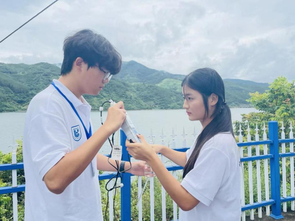 交流结束后,“河小禹”实践队员们携带专业检测设备,前往翠屏湖开展水质检测调研。队员们分工协作,有条不紊地进行水样采集、PH 值测定等工作,仔细记录每一项数据,为后续分析河道水质状况、评估生态保护成效积累了第一手资料。