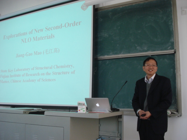 12月2日, 中国科学院福建物质结构研究所研究员毛江高博士生导师莅临我校,为化学系师生做了题为《非中心对称结构无机化合物的设计合成》的讲座。