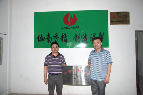 2014年6月18日,化学系主任颜桂炀教授、主任助理应少明教授等一行,利用到福州参加“第十二届中国·海峡项目成果交易会”的空档时间,到福州伽南香料香精技术开发有限公司走访,对公司进行实地考察,并举行“教学实践基地”的挂牌仪式,为我系今后应用化学专业学生的见习又增加了一个基地。
