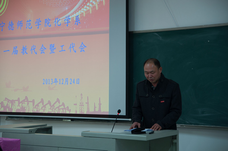 2013年12月24日下午14:00,在新校区求实楼4层CC402多媒体教室胜利召开了化学系第一届教代会暨工代会,在全体代表的共同努力下,按预定计划完成了各项议程,取得了圆满成功。谢向东副校长到会表示祝贺,并发表了热情洋溢的讲话。