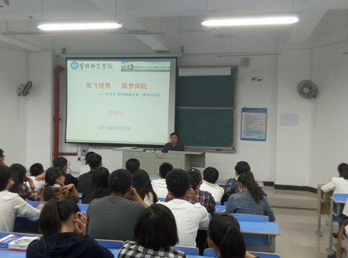 2015年10月29日,在化学系求实楼CC401大教室,化学系系主任颜桂炀教授应邀为全系新生做了一场题为《放飞理想、筑梦师范》的教学讲座。本次讲座由黄晓辉老师主持,beats365唯一官网入口官网化学系师生一百五十多人参加。