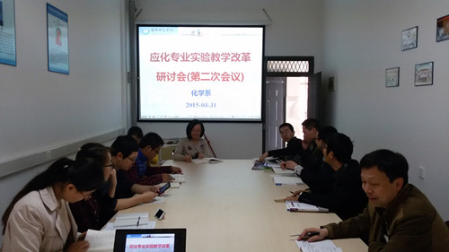 为进一步开展实验教学改革,3月31日下午,14级化学系应用化学专业实验教学改革第二次研讨会在化学系实验楼202会议室举办。本次会议针对上学期14应化专业实验课程存在的问题、14应化专业部分实验课程标准的制定、15应化专业实验课程体系的修订及改进等三个方面展开。会上本项目负责人、化学系主任颜桂炀教授对下一步工作做了部署。会议参加人员主要由高学历、高职称以及富有实验教学经验的教师组成。会议上大家对实验教学改革进一步开展进行了热烈讨论,提出了多项有建设性的意见。(应少明)