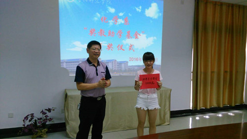 为激励广大教师爱岗敬业、潜心教学,鼓励广大学生刻苦学习、立志成才,本着营造关心、支持教育的良好氛围,化学系于2015年12月成立了“奖教助学基金”,每年6月份评选一次,“奖学金”专门用于表彰、奖励优秀学生和做出突出贡献教师;“助学金”专门用于鼓励家庭困难、学习勤奋的困难学生。该基金首批从企业及爱心人士募集到的金额达6.85万元。(雷永汉)