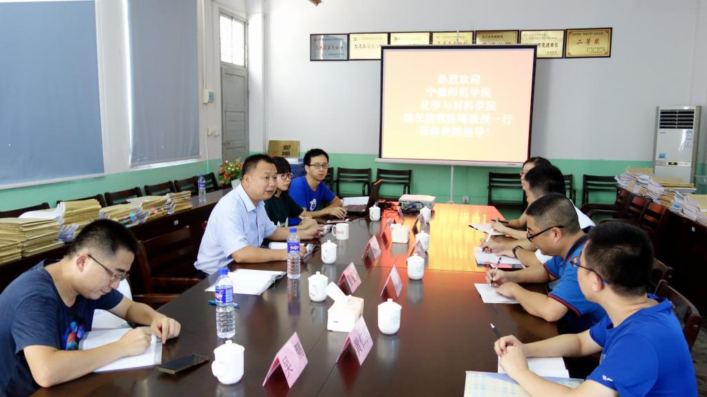 26日下午,陈峰一行前往龙岩学院化学与材料学院进行调研,受到该院党委书记易福全、院长胡志彪、副院长姜秀榕、院教科办主任童曼霞以及材料科学与工程系主任刘少存、副主任吴鹏的热诚欢迎。座谈会上,胡志彪院长和陈峰教授相互介绍了各自学院和专业的建设情况,双方就材料化学专业的培养方案、课程标准、实验室建设、实验教学中一些问题等有关问题展开讨论交流。陈峰一行还参观了龙岩学院化学与材料学院的实验大楼。