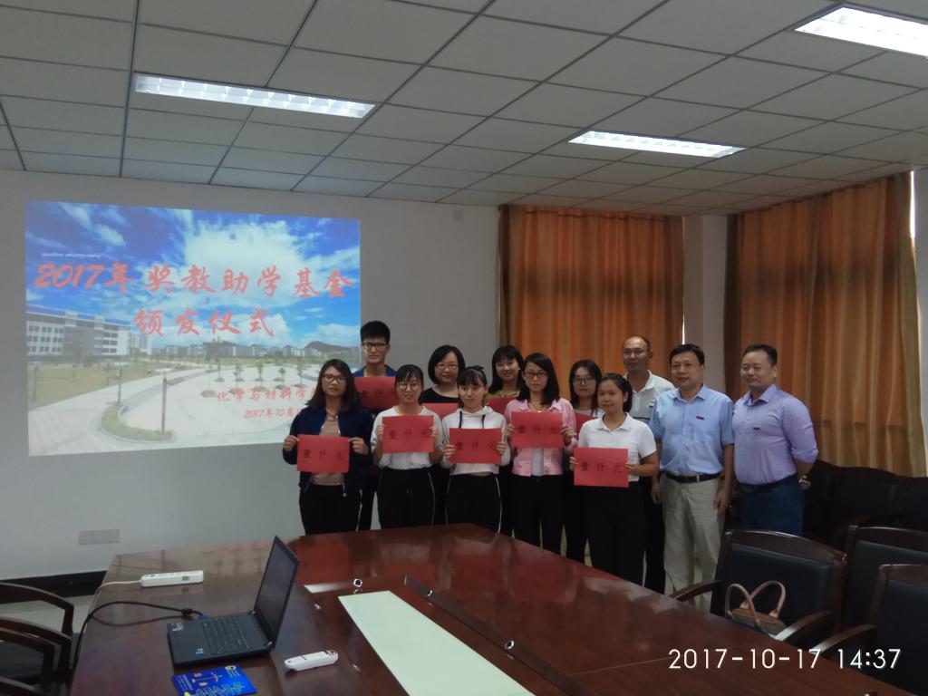 为激励广大教师爱岗敬业、潜心教学,鼓励广大学生刻苦学习、立志成才,本着营造关心、支持教育的良好氛围,原化学系于2015年12月成立了“奖教助学基金”,每年6月份评选一次。“奖学金”专门用于表彰、奖励优秀学生和做出突出贡献教师,“助学金”专门用于鼓励家庭困难、学习勤奋的困难学生。(雷永汉 供稿)