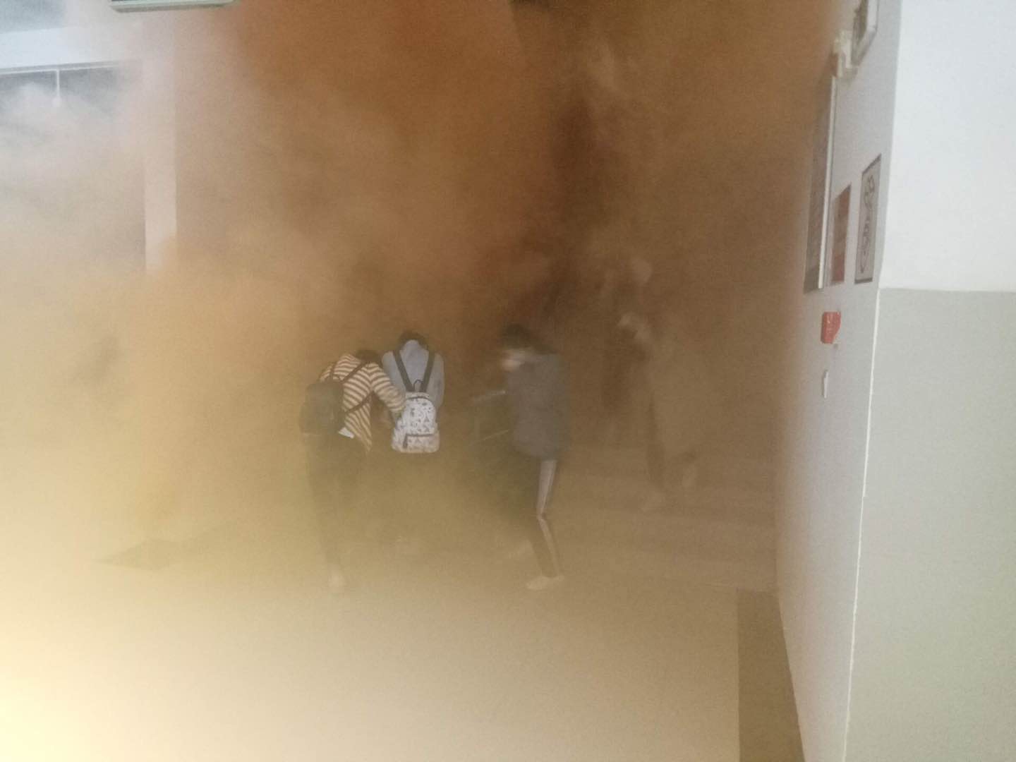 实验楼里烟雾弥漫,浓烟滚滚,消防车警笛此起彼伏,消防官兵和保卫干事正忙碌地指挥着,师生们有条不紊地进行疏散......11月6日晚化学与材料学院联合校保卫处配合宁德公安消防队特勤中队开展了一场消防疏散演练。消防疏散演练在化学实验楼进行,模拟学院同学晚上在实验室上课过程意外失火后报警逃生,有序疏散的场景。化学与材料学院部分师生参与了演练。通过演练,更好全面地普及了消防知识,强化了全体师生对疏散路线和疏散要求的记忆,提高了师生们的安全意识和警惕性,取得良好效果。