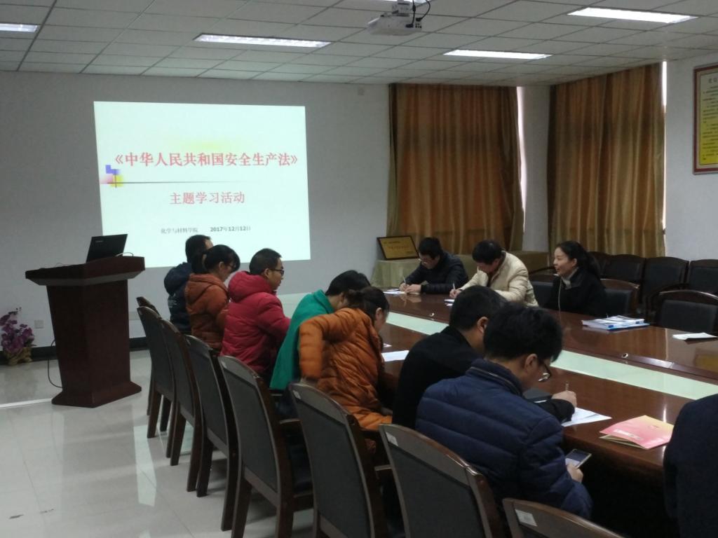按照《国务院安委会办公室关于深入组织开展好第一个〈安全生产法〉宣传周活动的通知》,及《宁德市教育局学校安全工作领导小组办公室转发国务院安委会办公室关于深入组织开展好第一个〈安全生产法〉宣传周活动的通知》的要求,化学与材料学院于12月11日至15日间组织全院师生开展了《安全生产法》的主题学习活动。