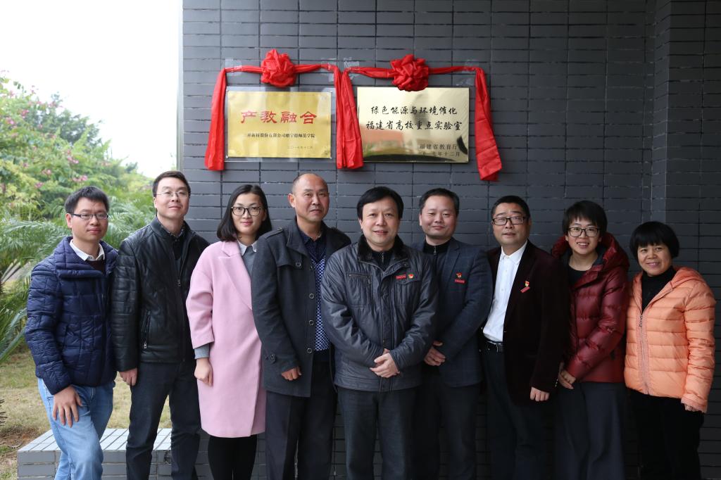 揭牌前,应少明副院长向颜桂炀副校长简要汇报了重点实验室的建设情况,并介绍了下一阶段的建设目标。接着,由颜桂炀副校长、游东宏、应少明、陈峰等四人共同为“绿色能源与环境催化福建省高校重点实验室”揭牌。颜副校长对重点实验室通过省教育厅组织专家的验收表示热烈祝贺。他指出,绿色能源与环境催化福建省高校重点实验室是依托我校建立的首个通过验收的省级重点实验室,学校将一如既往的在人力、财力、物力等方面给予全力支持,希望我院能充分利用好该平台,按照《福建省高校重点实验室建设与运行管理办法》,深抓重点实验室内涵建设和管理,进一步加大人才引育力度,积极开展原始性科研创新能力,深化产教融合,推动我院科研、教学、校企合作与人才培养工作更上一层楼,实现学科建设跳跃式发展。