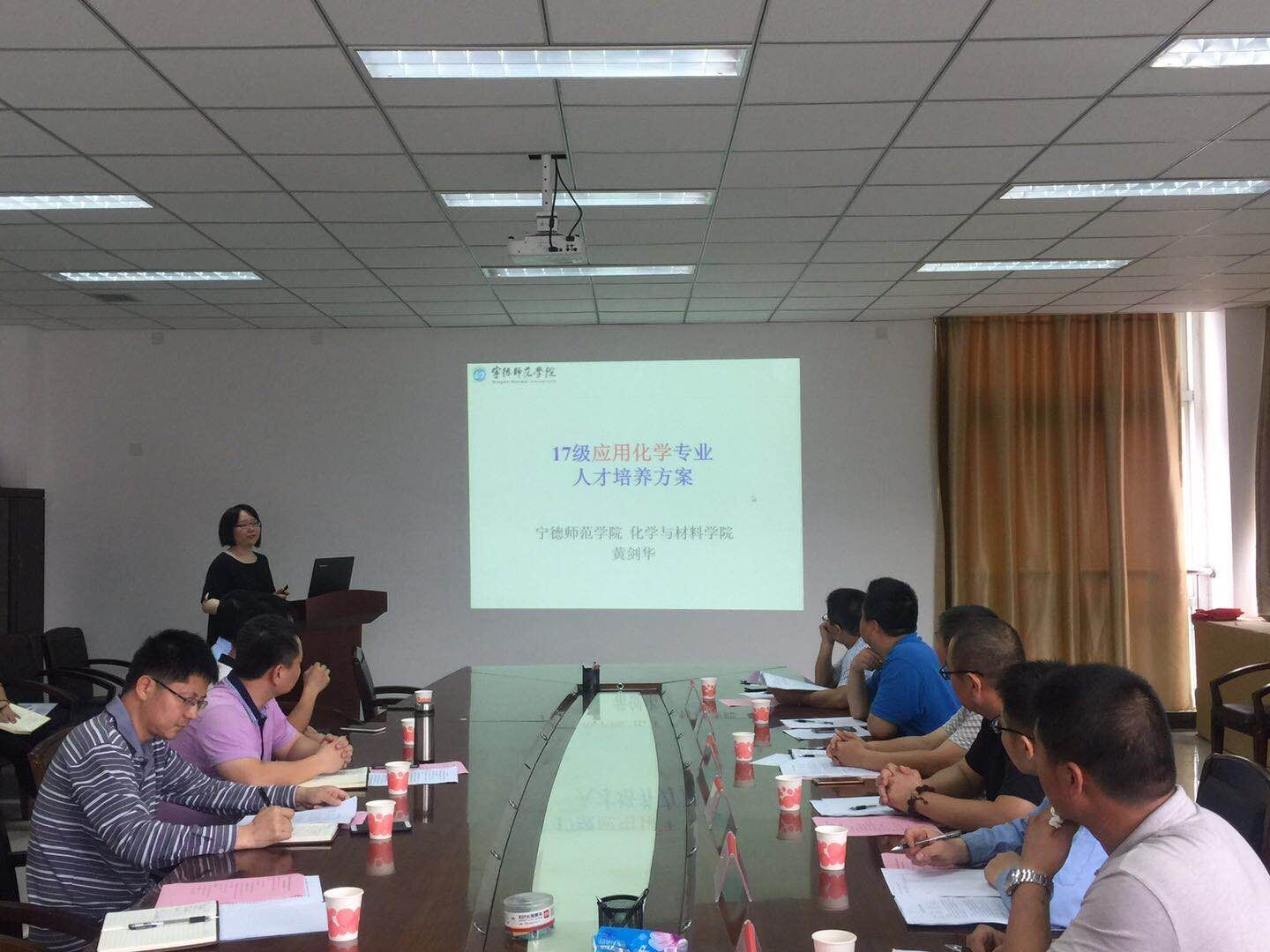 2018年6月1日下午,应用化学专业建设研讨会暨人才培养方案论证会在化学与材料学院求实楼四楼会议室召开。宁德市食品药品检验检测中心黄训瑞所长、宁德市产品质量检验所王兴进所长、福建省(屏南)榕屏化工有限公司何中总经理、漳湾垃圾焚烧发电有限公司行政经理孙天强、运行经理夏长生、环保专工刘建满等校外专家应邀出席会议。化学与材料学院副院长应少明及应用化学专业全体教师出席会议。会议由化学系主任薛岚主持。