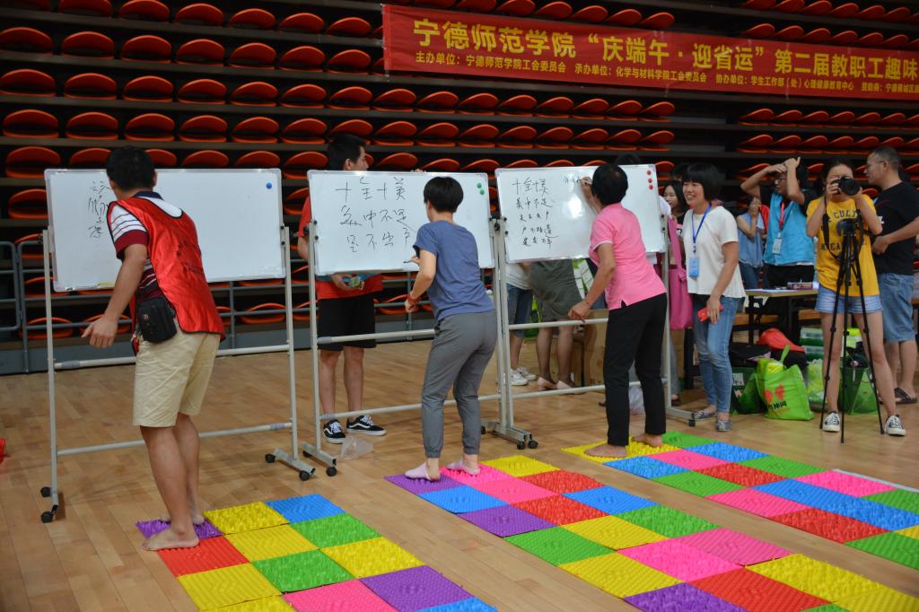 粽叶飘香菖艾情,但祈蒲酒话升平。端午来临之际,为丰富教职工文化生活,激发我校教职工的工作热情和团结协作精神,6月12日下午,我校工会在体育馆举行“庆端午﹒迎省运”第二届教职工趣味运动会。本次活动由校工会主办,化学与材料学院工会承办、学生工作部(处)心理健康教育中心协办。校领导和全校各学院工会及老退协共370多名教职工参加了本次活动。
