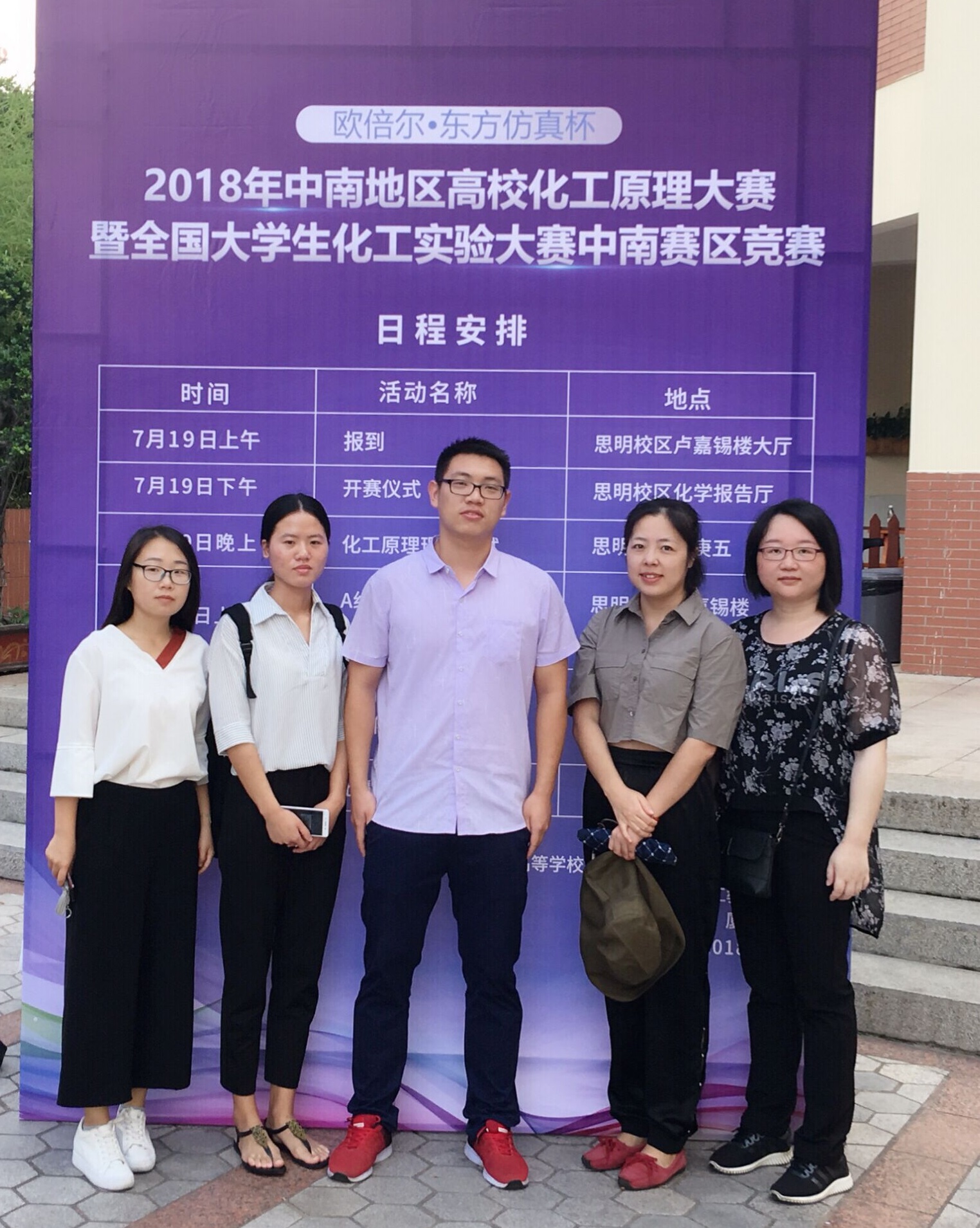 由我院16级环境科学与工程专业学生李伟强、王景月和孙娜等3位同学组成的“朔果累累队”报名参加了2018年中南地区高校化工原理大赛。在黄剑华和王佳伟老师的悉心指导下,“朔果累累队”获得中南地区高校化工原理大赛优秀奖。