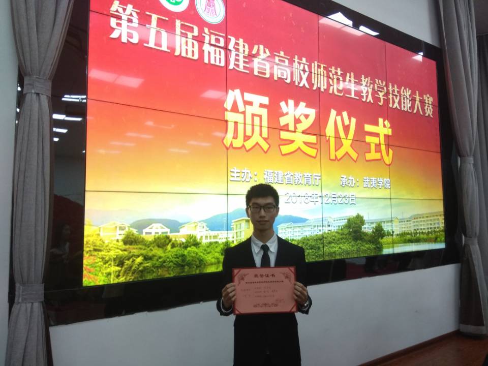 12月22日-23日,由福建省教育厅主办,武夷学院承办的第五届福建省高校师范生教学技能大赛总决赛在武夷学院顺利举行。初中化学组竞赛的8位选手分别来自福建师大、闽南师大、泉州师院等省内各师范类院校,我院选派2015级化学专业陈奕昕同学参与比赛的角逐。