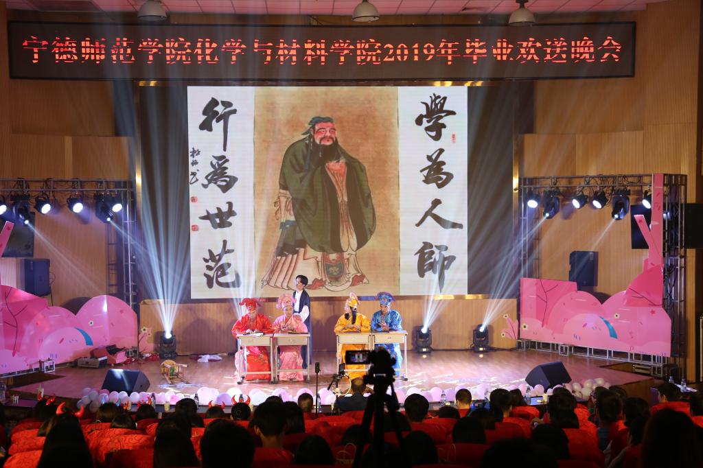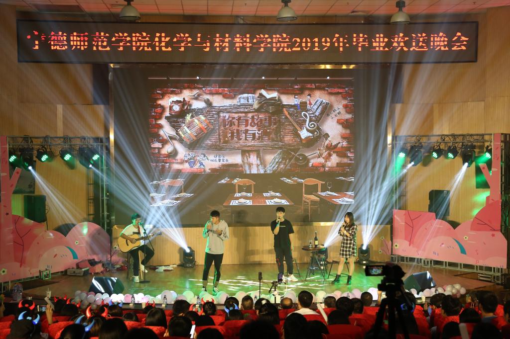 “长风破浪会有时,直挂云帆济沧海”。游书记以古诗句作为开幕致辞,表达了对2019届毕业生的美好祝愿。精彩绝伦的灯光秀拉开了晚会的帷幕;《复古港风舞》让观众感受到时间的流逝;小品《学堂四大才子完结篇》、《上学那些事儿》模拟了课堂生活,诙谐的表演却也让温馨的师生情更入人心;相声《杂学说》带来了此起彼伏的欢快笑声;串烧歌曲《毕业之旅》表达出对毕业生深深的祝福;街舞《balloon》、流行舞《oh my》展示了舞蹈的动感;古风歌曲《九张机》带领观众领略了国风的韵美,把晚会推向了高潮。欢快的节奏、跳跃的音符展现出现代大学生的活力与青春,观众掌声连连、赞叹不绝,还有即将毕业班同学为大家倾情演唱歌曲《大鱼海棠》。晚会中穿插的游戏互动心有灵犀,师生热情参与,抽奖环节更是令人万分激动。回望过去的青葱岁月,好像一场难忘的旅程,一场影子舞《不说再见》勾起了大家对大学生活的无限回忆,一首合唱《致青春》展望了对未来的无限希望。晚会接近尾声时,大屏幕放映了各位院领导和老师们对大家的深情寄望以及师兄师姐们对大学生活的回忆录像,一帧帧、一幕幕都是真情满满。