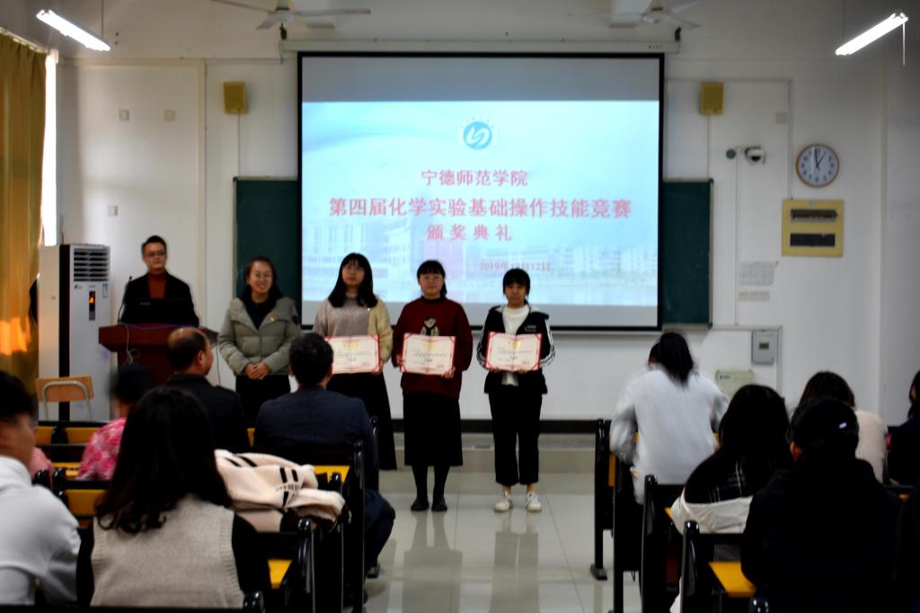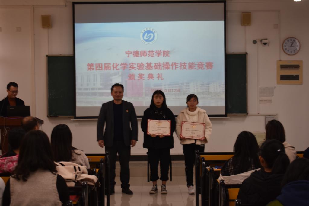 比赛分为初赛和决赛两个阶段。通过笔试,遴选出专业组43人和业余组12人进入决赛环节。决赛为实验技能操作,采用单项考核、分头并进、独立操作、限时完成的方法全面考察学生的实际操作能力和化学基本技能掌握情况,决出17级专业组奖项6人;18级专业组一等奖12人;业余组奖项6人。其中,陆雨琪获2017级专业组一等奖,陈雅纯、帅阿敏获2017级专业组二等奖,张敏、吴晓婷、林焰获2017级专业组三等奖;黄婉儿、张梦菲获2018级专业组一等奖,夏文凯、许若筠、吴澈、汤美玉获2018级专业组二等奖,郑玲玲、杜亚男、江一丹、王焰、刘华婷、宋开华获2018级专业组三等奖;李亚茹获业余组一等奖,沈燕桂、张家琪获业余组二等奖,陈慧婉、白彩雯、熊超获业余组三等奖。比赛还设立了优秀奖,鼓励勇于参赛的同学。