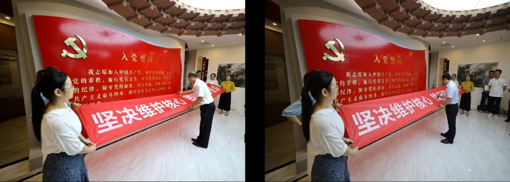 面对鲜红的党旗,凝视金色的镰刀锤头,在游东宏带领下,全体党员举起右拳郑重宣誓。场景庄严肃穆,誓言铿锵有力,展现了党员永远追随党、永远忠于党的执着与坚定。重温入党誓词唤醒了党员先进意识和党性意识,永葆共产党员的政治本色。
