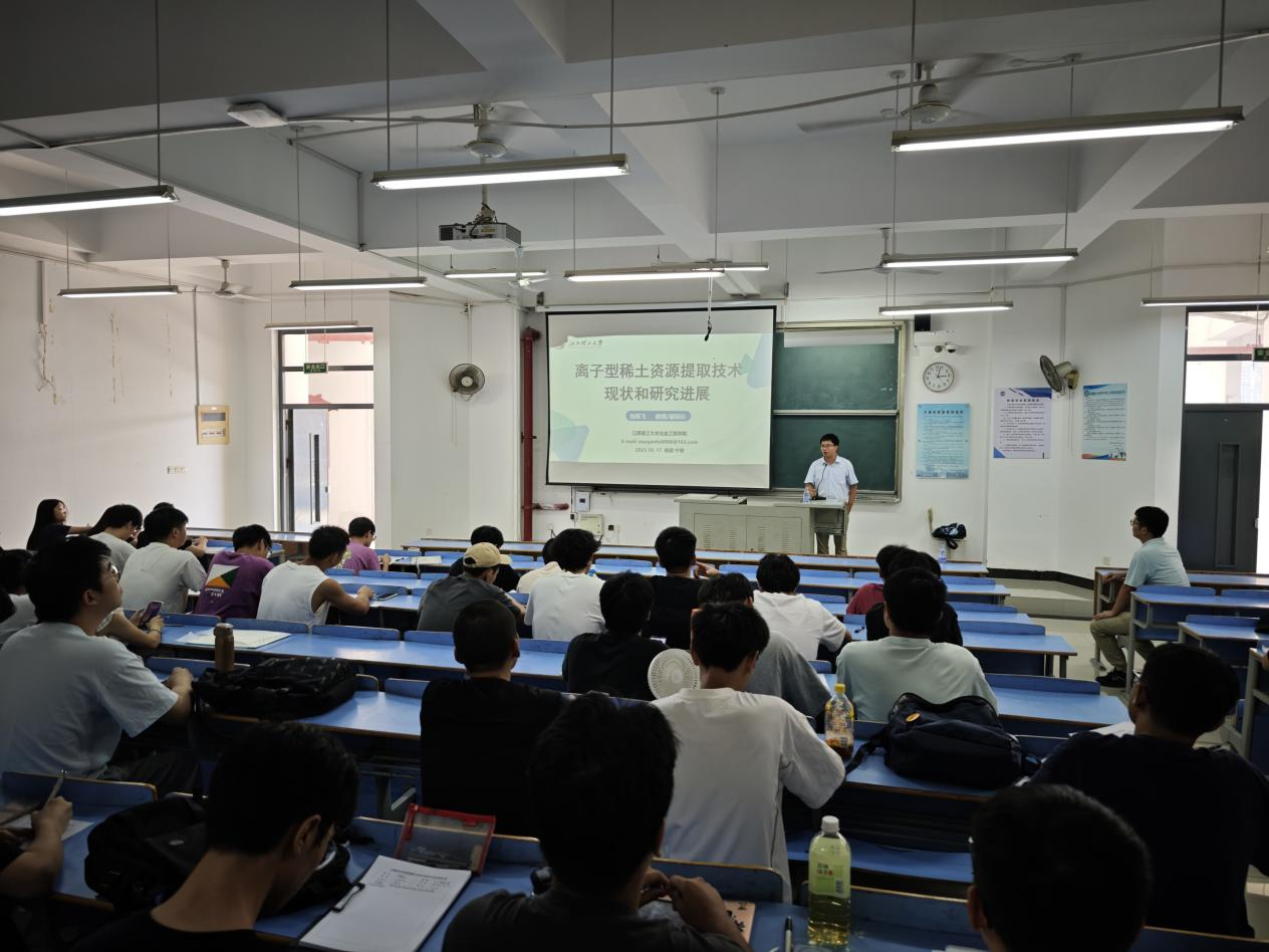 2025年10月17日,江西理工大学冶金工程学院副院长肖燕飞教授和倪志聪博士莅临我院开展交流考察,肖燕飞教授为冶金工程专业学生开设了题为“离子型稀土资源提取技术现状和研究进展”的专题讲座。