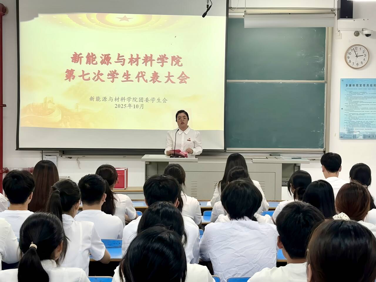 大会在激昂的国歌声中正式拉开帷幕。欧嘉烟老师在致辞中强调,坚定理想信念、增强政治意识是青年的责任所在,勇于担当、提高综合素质是应对新挑战的关键要素。她希望广大青年学生勤奋学习、敢于创新,以青春之名,赴时代之约,共同推动集体进步。