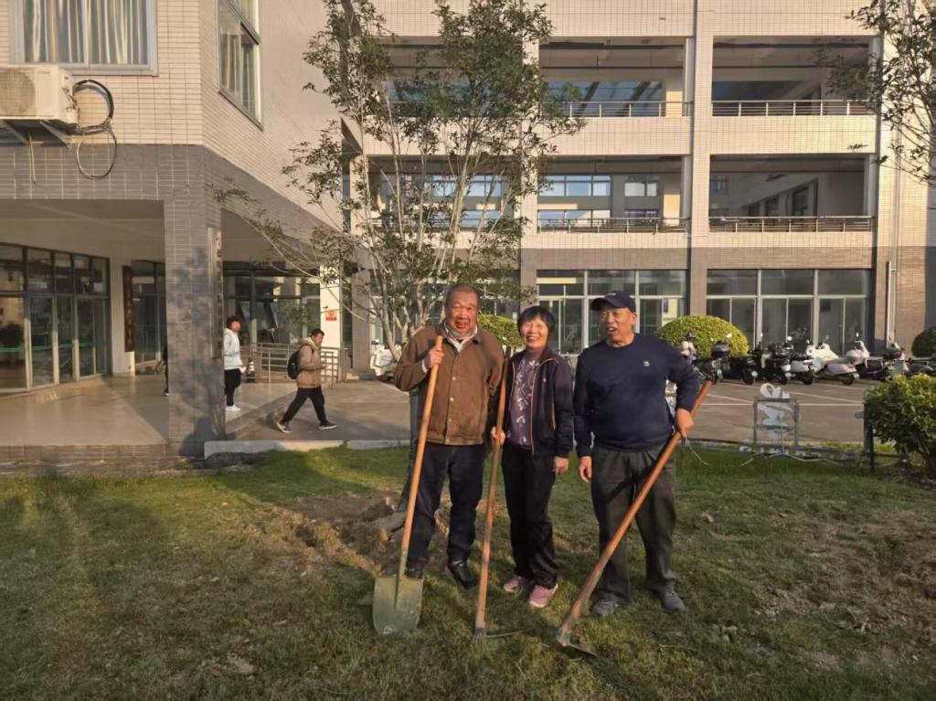 我院77级校友在学校60周年校庆时,在学院楼前草坪种下四季桂,感念母校培育之恩,缅怀恩师教诲之情。此次返校,校友代表们与2024、2025级学子共同为桂花树翻土、施肥、剪枝,两代“新材人”分工协作、交流欢笑,郭赛玉书记一行到场与校友畅谈求学岁月,介绍学院学科建设与人才培养成果。随后的“情系母校薪火相传”座谈会上,校友分享奋斗故事、鼓励青年学子,师生代表汇报学院发展新貌。