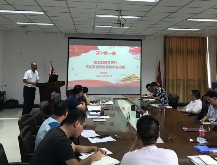 接着,院党委书记游东宏为全体教师上题为《把党的教育方针贯彻落实到教育教学全过程》的开学第一课。他从把握党的教育方针的丰富内涵和重大意义、加强党的全面领导,把准应用技术型办学方向、坚持五育并举,推动内涵式发展等方面阐述了把党的教育方针贯彻落实到教育教学全过程的实践路径,着力培养德智体美劳全面发展的社会主义建设者和接班人。并表示,新学期即将开始,面对新形势、新任务、新挑战,希望老师不忘教书育人的初心,牢记立德树人的使命,在教育教学改革中领会落实党的教育方针,自觉做到“两个维护”,遵守《新时代高校教师职业行为十项准则》,规范良好的师德师风行为,凝心聚力,砥砺前行,在新的学期里实现新进展、新跨越,为学院高质量发展贡献力量。阿楠 供稿