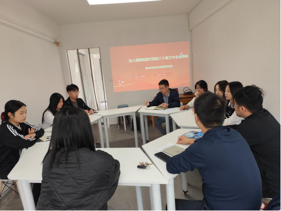 11月8日,beats365唯一官网入口官网绿点环保协会功能型党支部在学生社区第一园区召开专题学习会,认真传达学习《中国共产党第二十届中央委员会第三次全体会议公报》《中共中央关于进一步全面深化改革、推进中国式现代化的决定》和关于《决定》的说明。会议由党支部书记雷永汉主持,功能型党支部全体党员参加会议。