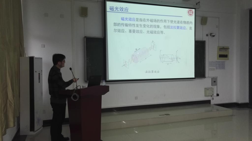 庄教授的讲座从磁光晶体的实际应用出发,介绍了它在光纤通信领域的一些主要用途,以及磁光晶体的生长方法、研究新进展。他指出在光纤通信快速发展的今天,磁光晶体有着广阔的研究价值和市场。讲座结束后,庄乃锋教授一一回答了师生的提问。庄乃锋教授的讲座开拓了学生视野,有助于我院师生了解最新科研前沿动态。 (应少明 供稿)