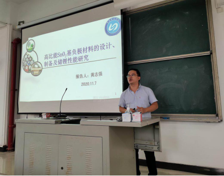 黄老师做了题为“高比能SnO2基负极材料的设计、制备及储锂性能研究”的讲座。黄老师对锂离子电池锡基负极材料的设计、制备及研究进行较为系统性的分析和报告。黄老师在报告讲解过程中,深入浅入,加深了学生对科研的认识,激发学生的科研热情和兴趣。