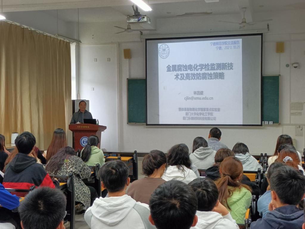 2021年10月21日上午,厦门大学特聘教授林昌健应邀莅临我校,在求实楼CC402为师生开了场题为“金属腐蚀的电化学检监测新技术及高效防护策略”的学术报告。