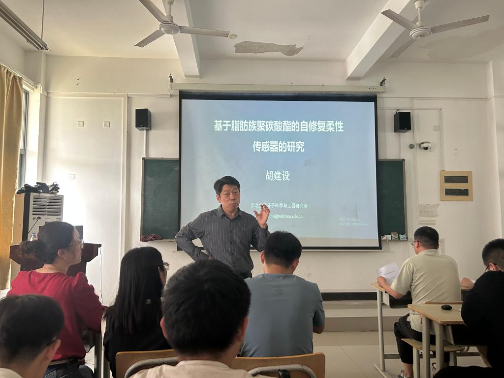 5月17日,东北大学胡建设教授应邀到我校开展题为“基于脂肪族聚碳酸酯的自修复柔性传感器的研究”的学术报告。