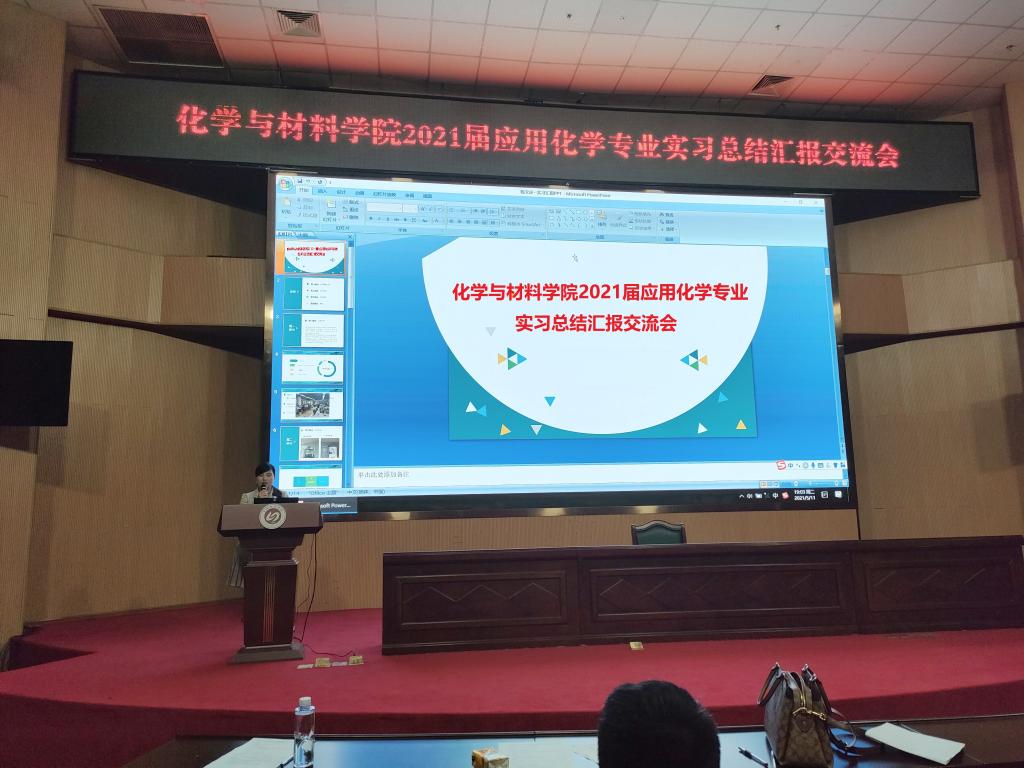 2021年5月11日,我院应用化学专业在图书馆三楼报告厅举办2021届应用化学专业实习总结汇报交流会。副院长黄晓辉和专业课任教师以及17级、18级应用化学专业140多位同学参加了交流会。会议由系主任黄剑华主持。