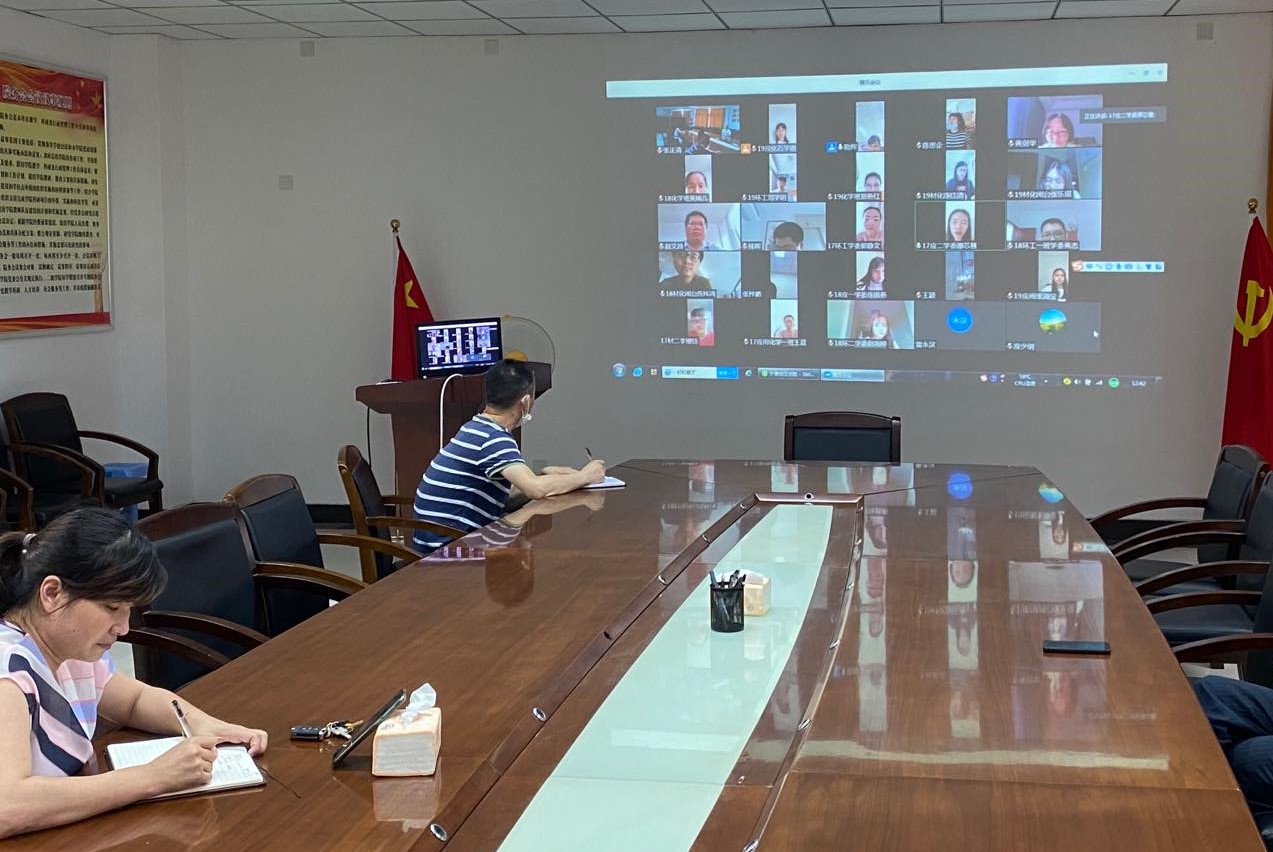 6月10日中午,化学与材料学院在求实楼401召开线上教学学委座谈会。党委院书记游东宏、院长应少明、院长助理黄晓辉、系主任及教研办主任参加了视频会议。会议由黄晓辉主持。