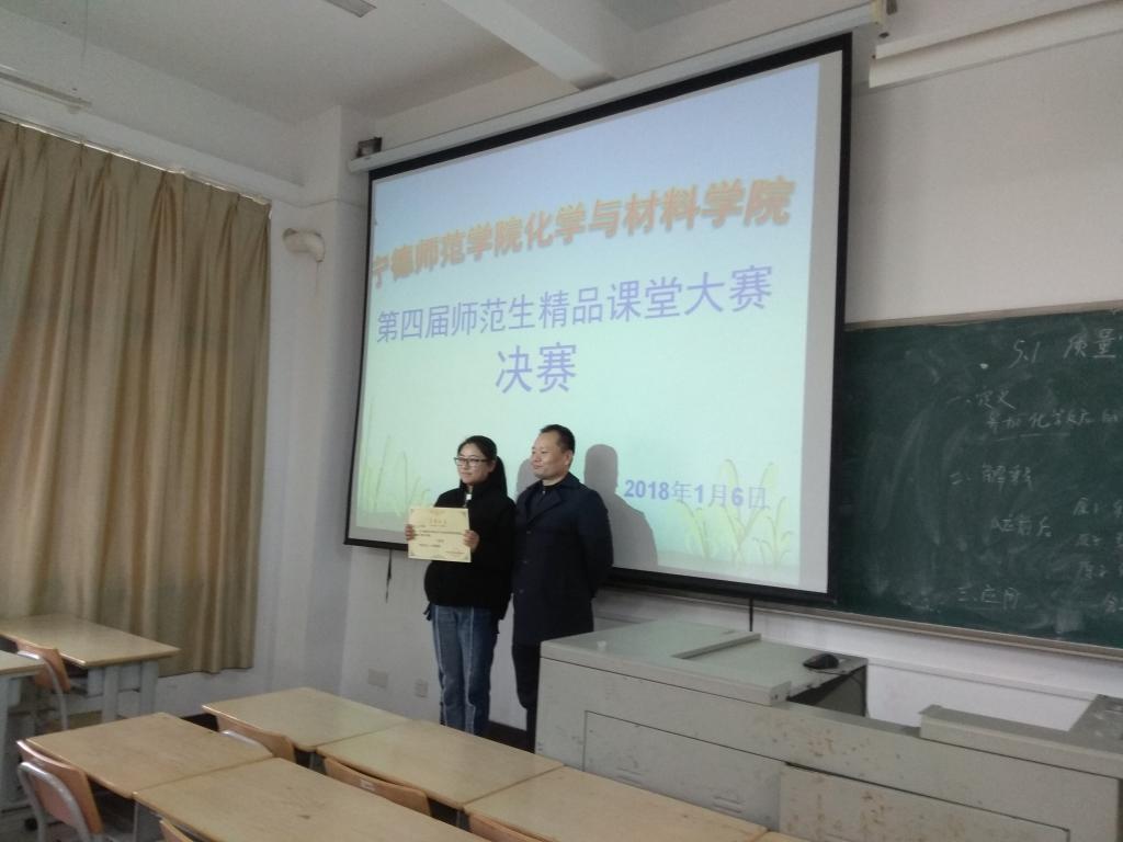 大赛分预赛和决赛两个阶段。本次赛事精心选拔出12位选手进行预赛,最后选出7位选手进入决赛。2018年1月6日,决赛于beats365唯一官网入口官网东侨校区求实楼B405举行。决赛特邀了宁德进修学院和蕉城中学的2位高级教师以及化材院的5位教师担任评委。经过激烈的角逐,陈弘颖同学最终夺得一等奖,邱艳婷和陈晓丹获得二等奖,黄巧玲、郑茂钦、陈清箭及蔡惠皇四位同学获得了三等奖。比赛中,不仅有2014级的同学前来观赛,同时还有2015级化学专业及其他专业的同学前来观摩学习,为今后的实习提前做好准备。赛后两位外聘教师还对选手教学设计和教学过程的重点难点的掌控、教学情境的设计及师生互动等方面进行了精彩的点评,同学们感到受益匪浅。(薛岚 供稿)