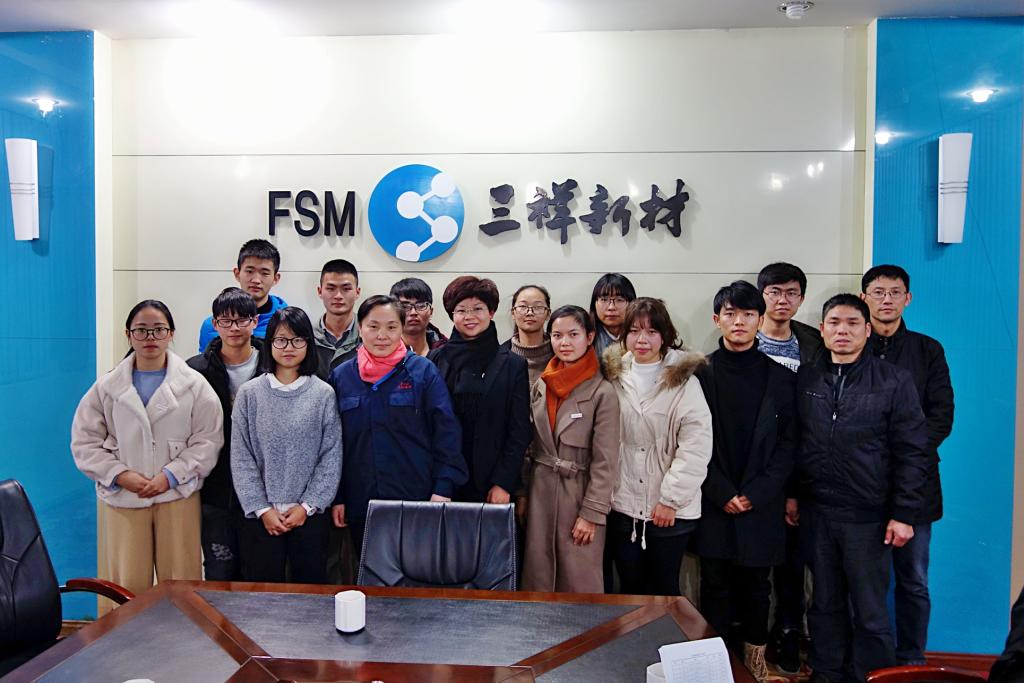 2018年1月6日,我校三祥新材雏鹰班的12名同学在化学与材料学院材料化学系副主任的林辉老师的带领下,到三祥新材股份有限公司三分厂进行参观考察,并参加面试工作。