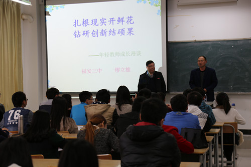 缪立雄书记为我系师范类学生开展了一场题为“扎根现实开鲜花,钻研创新结硕果——年轻教师成长简谈”的讲座。缪书记首先深入地分析了当今年轻教师的五大优点及常见的一些缺点。其次,他针对年轻教师的优缺点,谈到“五个坚持”,让师范生更加懂得如何将自己的优点发挥出来,懂得如何更好地当好一名年轻教师。再者,缪立雄书记也为同学们讲解到在这信息化的时代,网络信息的重要性。最后,在提问环节,缪立雄书记为同学们解答了一个又一个疑惑,解决了许多实习中遇到的困惑。这场精彩的讲座内容通俗、系统、全面、丰富,体现出缪立雄书记在教育领域深厚的造诣,同时,也为我系众多学子在未来教师路上指明了一个新的方向!(薛岚报道)