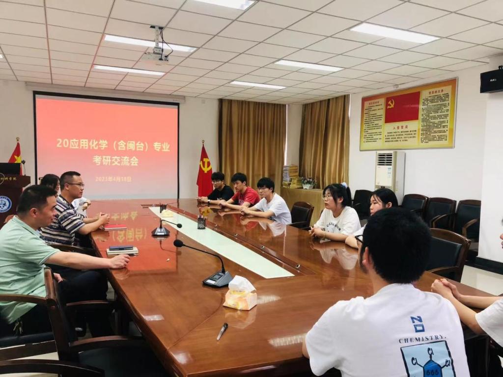 2023年4月18日,应用化学系在院会议室召开2020级应用化学专业学生考研交流会。系主任庄凰龙、学工办主任雷永汉和年级辅导员黄玉芳老师参加会议。
