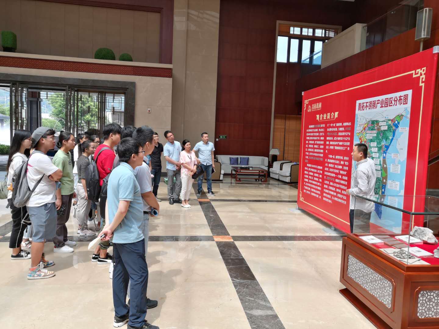 此次赴青拓集团参观的学生为即将步入大四的实习生代表。刘永清部长带领师生们参观了青拓集团展示大厅、青拓研究院和青拓集团展示馆,为师生们讲解了青拓集团的发展历史、基本现状及未来规划,对在场的实习生代表提出了殷切的希望,鼓舞学生们在今后的实习工作中不畏艰辛、克服困难,为大学生涯画上一个圆满的句号。