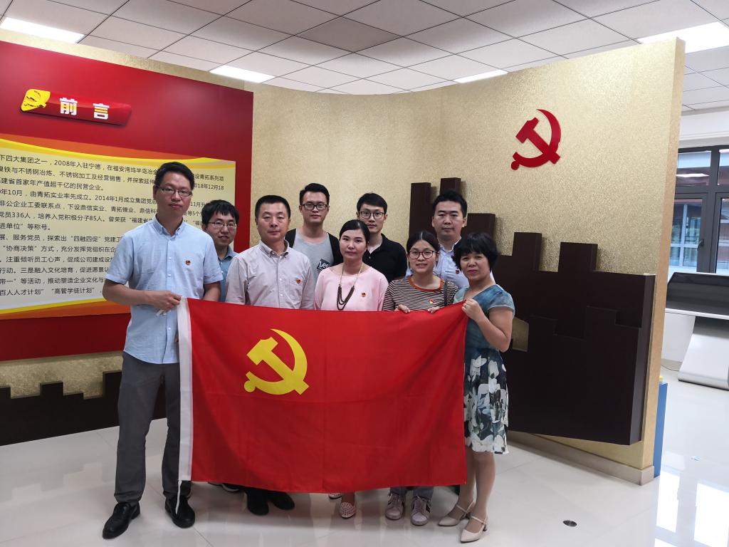 2019年6月12日,化学与材料学院党员代表们在教师第一党支部叶陈清书记的带领下,前往位于福安湾坞工业区的青拓集团开展校企党建工作交流活动。